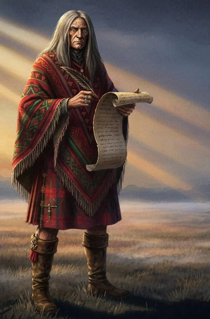 Their Muggle clothes look strange and do not match at all. One is wearing a full business suit and large boots. The other is wearing a Scottish kilt and a Mexican poncho. Mr. Weasley walks towards them. “Good morning, Basil,” he says. He gives the old Portkey boot to the wizard in the kilt. “Hello, Arthur,” says the wizard wearing the kilt. He throws the boot into a box filled with old Portkeys. “You had better get out of the way,” says Basil. “We are expecting a large group from the Black Forest.”