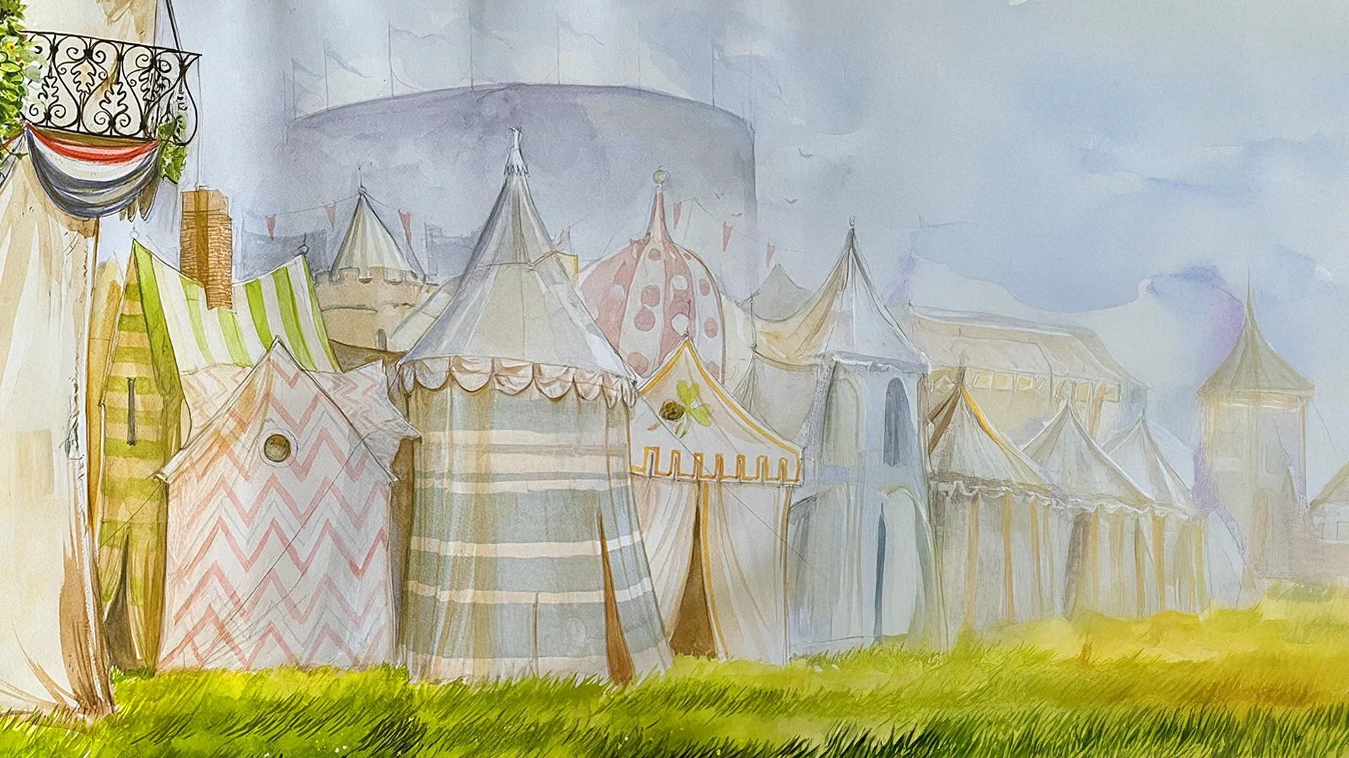 They walk through the campsite. The sun rises slowly, and the mist slowly disappears. Families with small children cook breakfast. A small boy plays with a wand, and his mother shouts when she steps on a giant slug he creates. Two little girls ride toy broomsticks that float just above the grass. A Ministry worker rushes past, saying parents should watch their children in daylight.